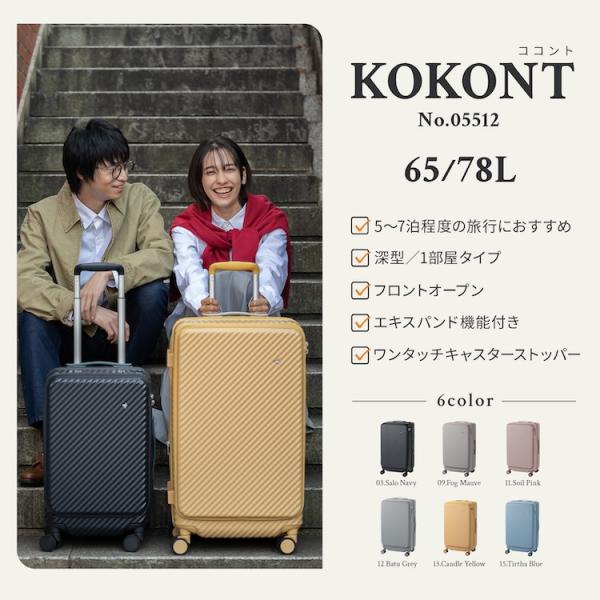 \公式/スーツケース HaNT ハント KOKONT ココント キャスターストッパー付 65/78L エキスパンド 双輪キャスター フロントポケット付き メンズ レディス 05512