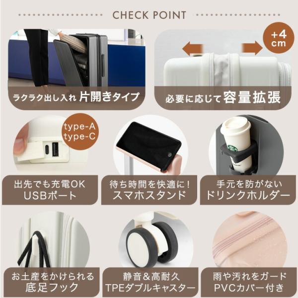 キャリーケース Sサイズ 前開き スーツケース 機内持ち込み おしゃれ 軽量 フロントオープン 充電 USB S 静音