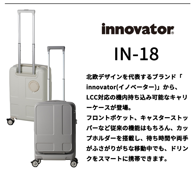 スーツケース キャリーケース 機内持ち込み 正規品 トリオ TRIO イノベーター innovator IV-18 35L ドリンクホルダー フロントオープン キャリーバッグ 軽量