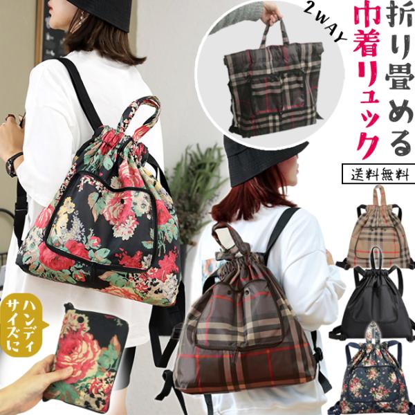 「レビュー記入でメール便送料無料」折りたたみリュック 巾着 トートバッグ ポケッタブル ナップサック A4収納 GPT gu1b379-mail(gu1b379) (1通につき1点迄)