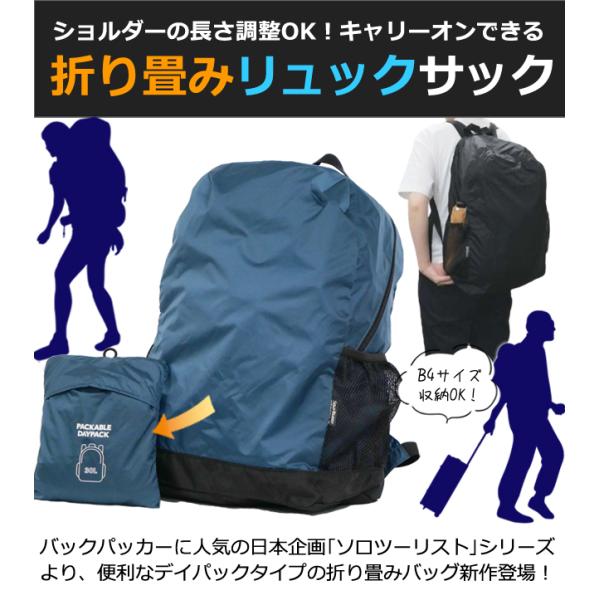 ソロツーリスト 折り畳みリュック 30L B4 A4収納 キャリーオンバッグ 折りたたみバッグ ポケッタブルスクエアリュック30 PSR-30 1点迄メール便OK(va0a442)