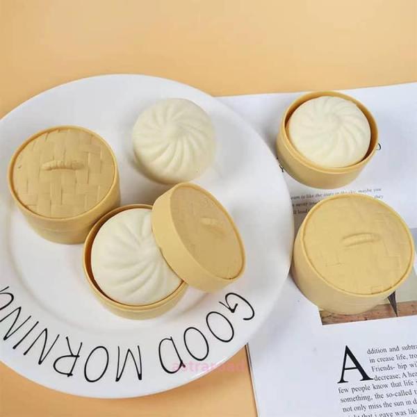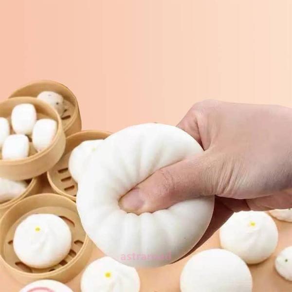 発散 8.5cm ストレス解消 肉まん まんじゅう とろふわ 蒸し器付き ぷにぷに 4個セット 低反発 スクイーズ かわいい 握る むにむに スクイー