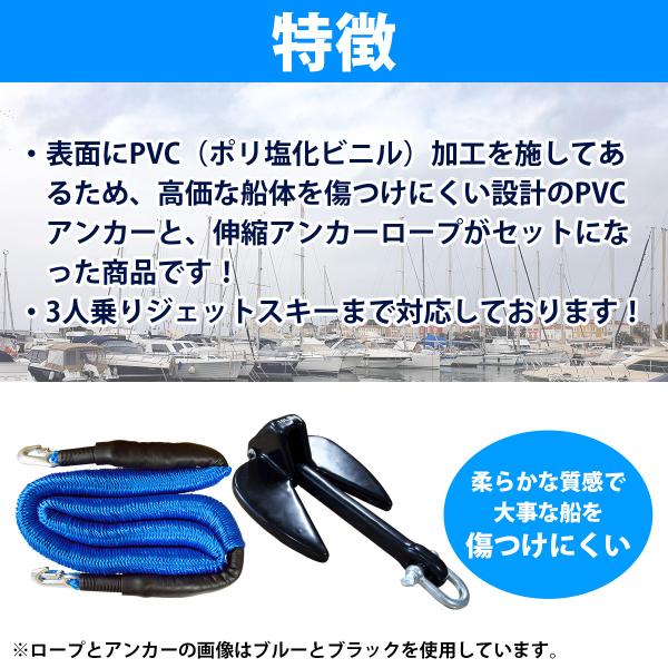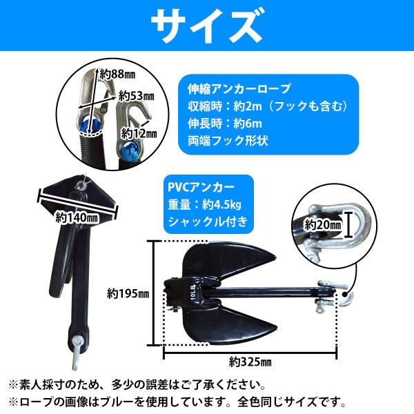 アンカー 4.5Kg&ロープ 2点セット ジェットスキー用 PVCアンカー 10LBS 伸縮のびのびアンカーロープ 2mから6m アンカー6色 ロープ6色