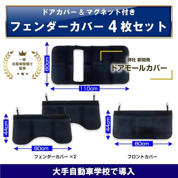 整備用フェンダーカバー 4枚セット ドアモールカバー付き マグネット固定式 収納可能フック付き PUレザー製 傷付き防止 自動車整備用