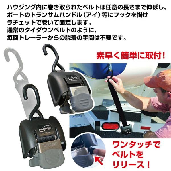 BoatBuckle ボートバックル ラチェット式 トランサム タイダウンベルト ステンレス製 714256 荷締メ 水上バイク ジェットスキー トレーラー ラッシングベルト