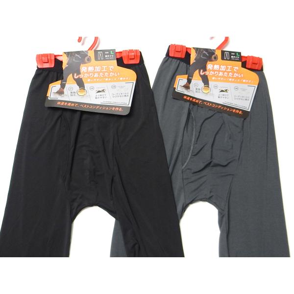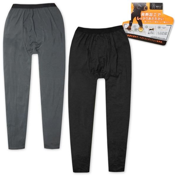 送料無料 紳士 メンズ 発熱加工 ロング タイツ インナー 前開き あったか素材 防寒 ストレッチ 薄手 無地 肌着 下着 yg-3190 メール便対応