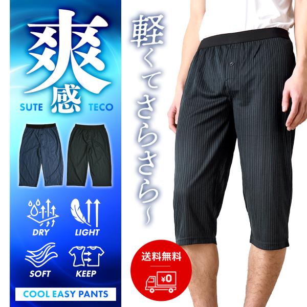 ステテコ メンズ 7分丈 DRYストレッチ パンツ 吸汗速乾 涼感 涼しい ルームウェア 部屋着 イージー リラックス 軽量 通気性 薄手 下着 インナー 送料無料 通販Y