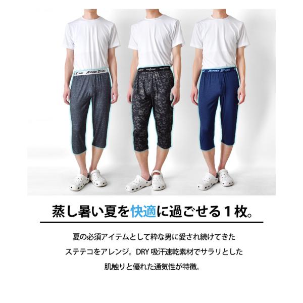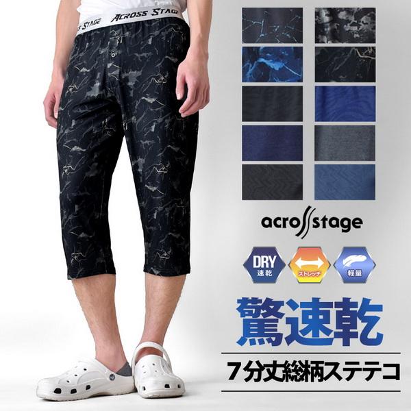 ステテコパンツ メンズ 7分丈 DRYストレッチ 吸汗速乾 総柄 薄手 涼感 ルームウェア 部屋着 送料無料 通販Y