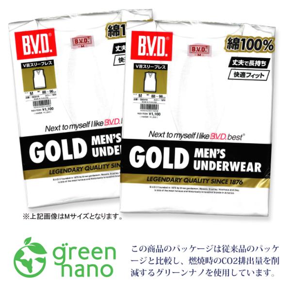 インナーシャツ bvd BVD GOLD Vネック スリーブレス 2枚セット タンクトップ スッキリタイプ 袖なし メンズ 肌着 綿100% 下着 アンダーウェア 爆買