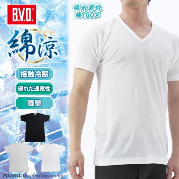 bvd V首 半袖 tシャツ 綿涼 接触冷感 メッシュ インナー 涼感 メンズ ムレ 吸汗速乾 綿100% 吸水速乾 通気性 梅雨 下着 肌着 ポイント利用