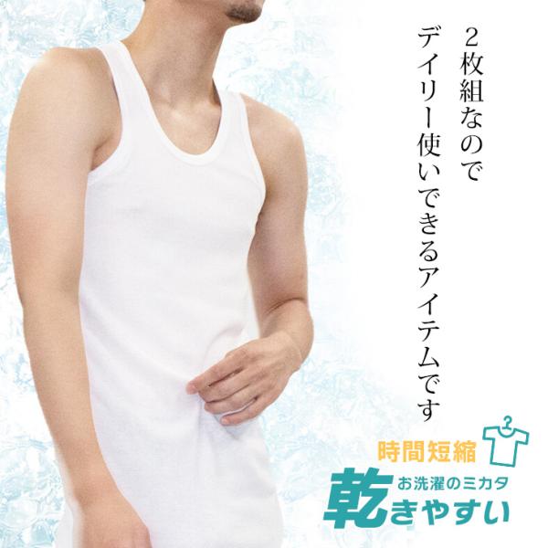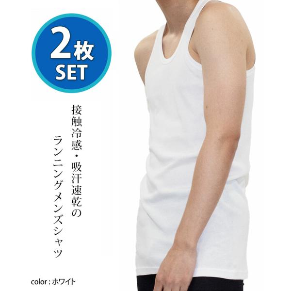 タンクトップ メンズ インナー 2枚組 ランニング シャツ ノースリーブ 肌着 冷感 吸汗 速乾 涼しい 薄手 夏 無地 フライス編 男性