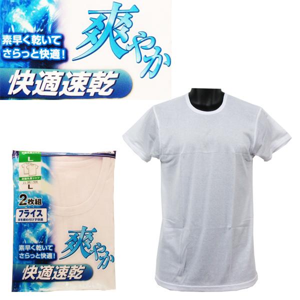 メンズ 半袖 丸首 大きいサイズ シャツ フライス インナー 大寸 肌着 DRY 2枚組 快適 速乾 ドライ 紳士 Tシャツ M L LL 3L 4L 白のみ 11042