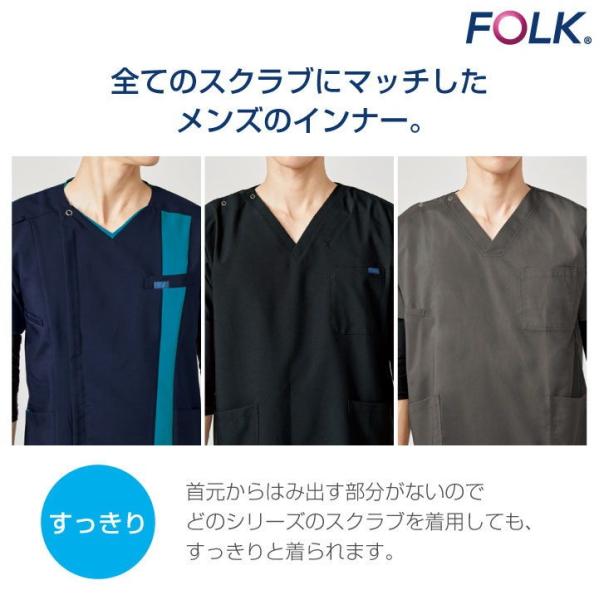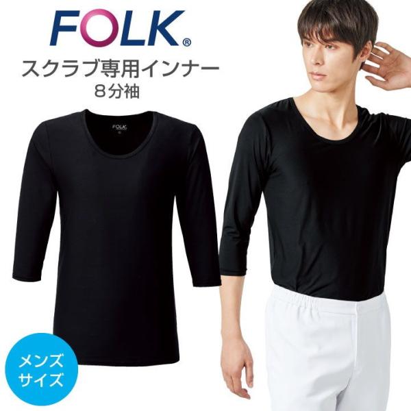 フォーク メンズカットソー スクラブ インナー アンダーウェア 吸汗 速乾 ストレッチ インナーシャツ ネコポス 長袖 fo-9002