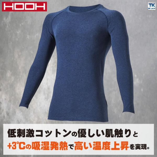 HOOH 鳳凰 ホットインナー ストレッチ 消臭 温かい フラットシーム 裏微起毛 柔らかい 低刺激コットン 作業服 作業着 村上被服 秋冬 長袖 ネコポス mh-485-b