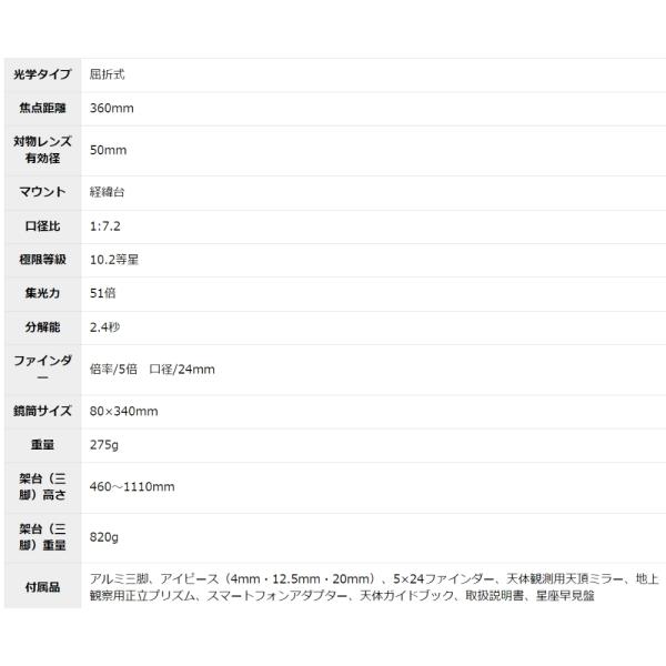 天体望遠鏡 天体/地上両用 口径50mm 屈折式 Kenko ケンコートキナー 最大270倍 焦点距離360mm スマホ撮影 三脚/スマホアダプター付 SKY WALKER SW-50A ◆宅