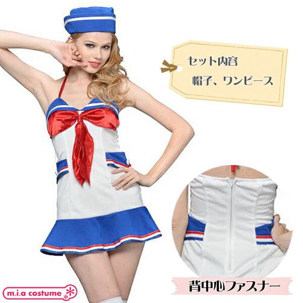 1113E■【送料無料・即納】NYW ホワイトセーラー サイズ:S 女性Mサイズ ワンピース マーメイド マリン風 海賊 コスチューム 衣装 コスプレ ホルターネック 水兵