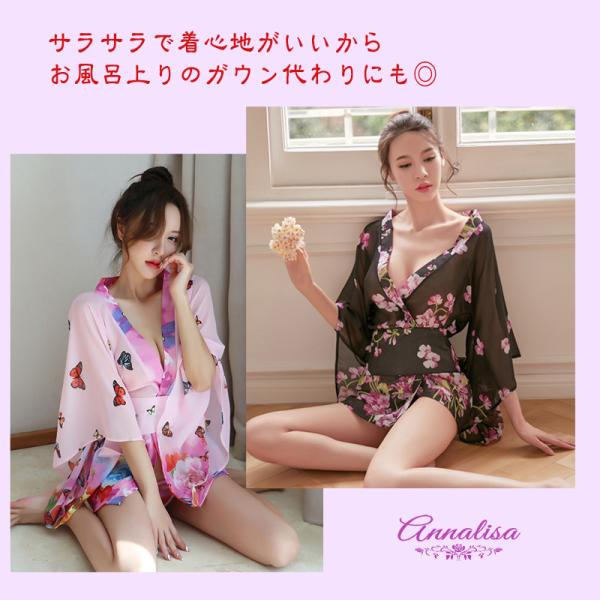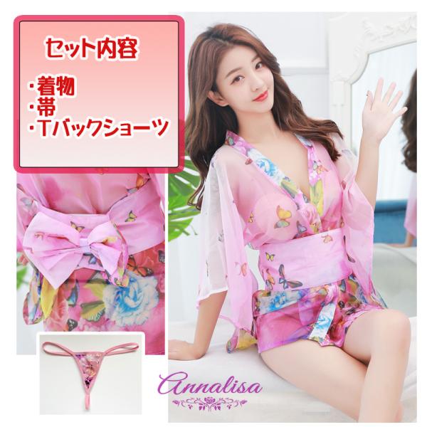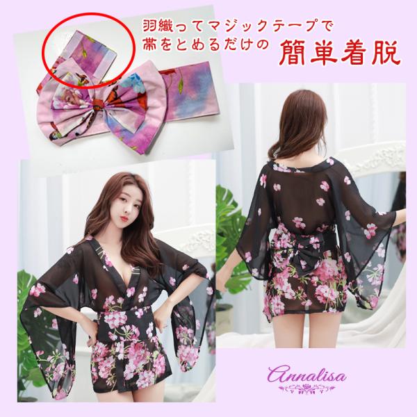 着物 和装 コスプレ 和服 浴衣 花魁 鮮やか 艶やか 透け シフォン セクシー ミニ ベビードール ネグリジェ