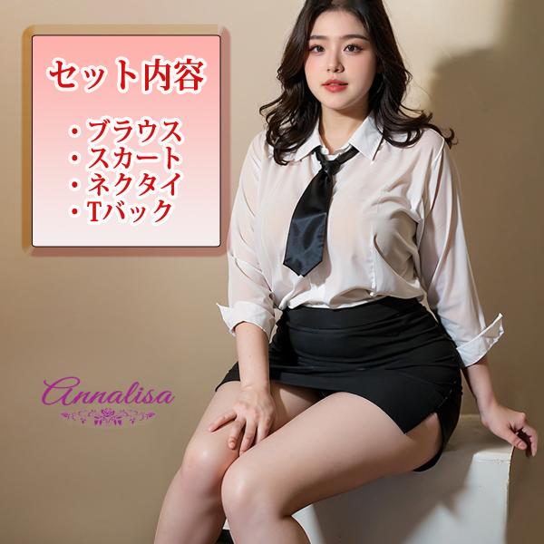 OL 女教師 大きいサイズ 秘書 コスプレ 教師 先生 オフィスレディー 男ウケ ネクタイ ブラウス 透け L LL XL ぽっちゃり 制服 セクシー 過激