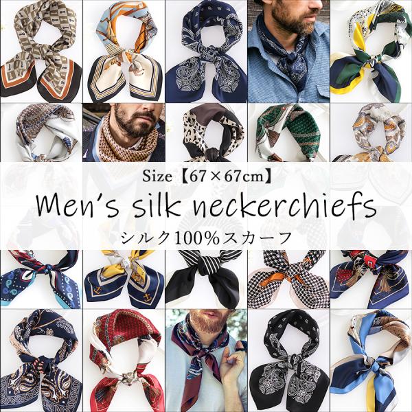 シルクスカーフ メンズ 春 夏 秋 冬 用 絹 シルク 100 % 馬 馬車 柄 正方形 68×68cm 全60色 d3 プレ クリスマス