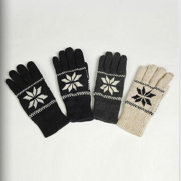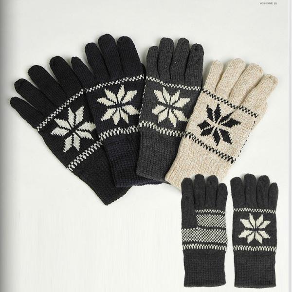 手袋 メンズ 温かい 起毛素材 内側 冬の雪結晶 雪柄 デザイン 男性 グローブ アクリル ニット 手袋 防寒 防風 ブラック ネイビー ベージュ ダークグレー 4色