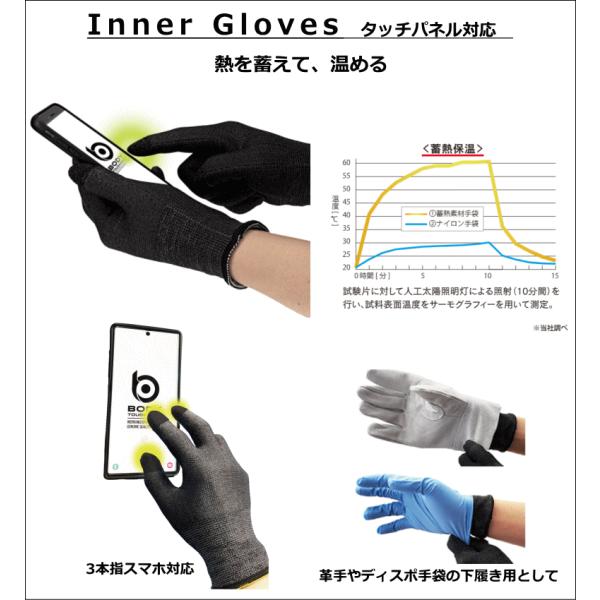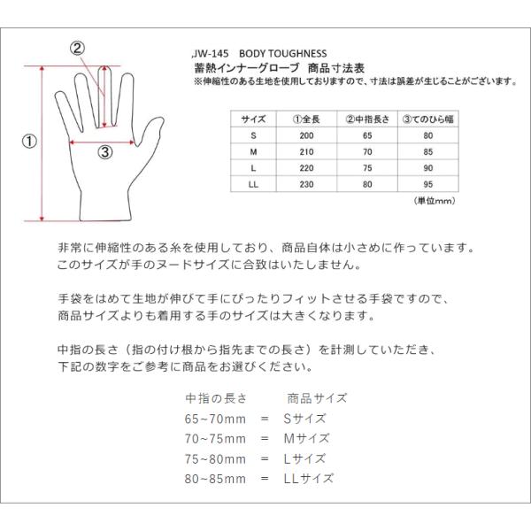おたふく手袋 JW-145 BTタッチパネル対応 蓄熱インナーグローブ 3本指スマホ対応