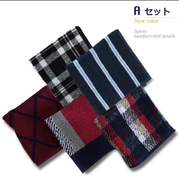 ハンカチ タオル メンズ 5枚セット タオルハンカチ ハンドタオル 綿100% プレゼント 紳士 クールビズ 父の日