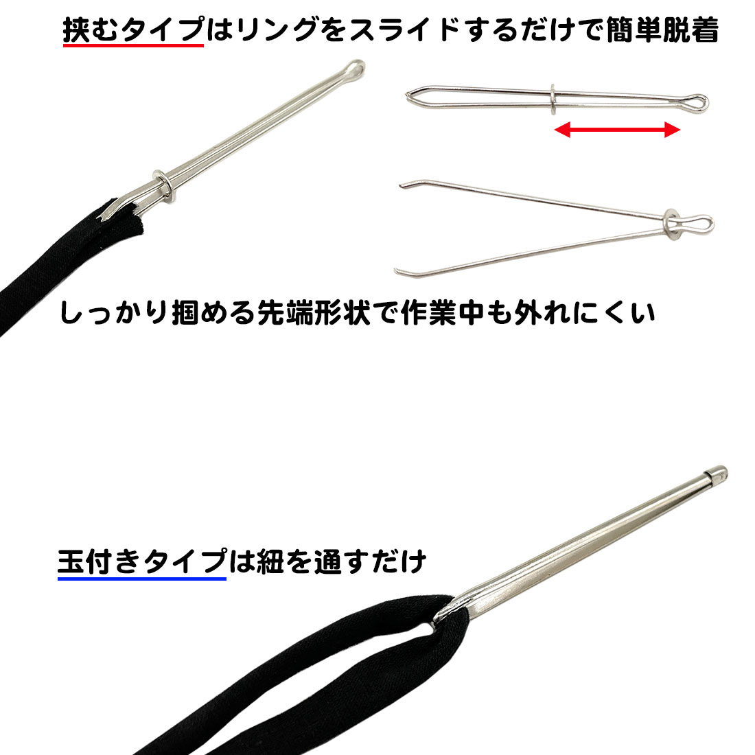 2種類セット 紐通し ゴム通し 挟み式 ひも通し ステンレス 丈夫 シンプル 裁縫 簡単 金属製 玉付き パジャマ ジャージ 体操着 ウエスト 調整 ズボン 送料無料