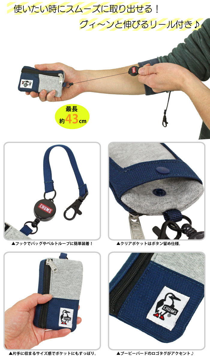 CHUMS チャムス コミューター パスケース リール付き スウェットナイロン カードケース 小銭入れ 撥水 撥油 防汚 CH60-3619 メール便対応