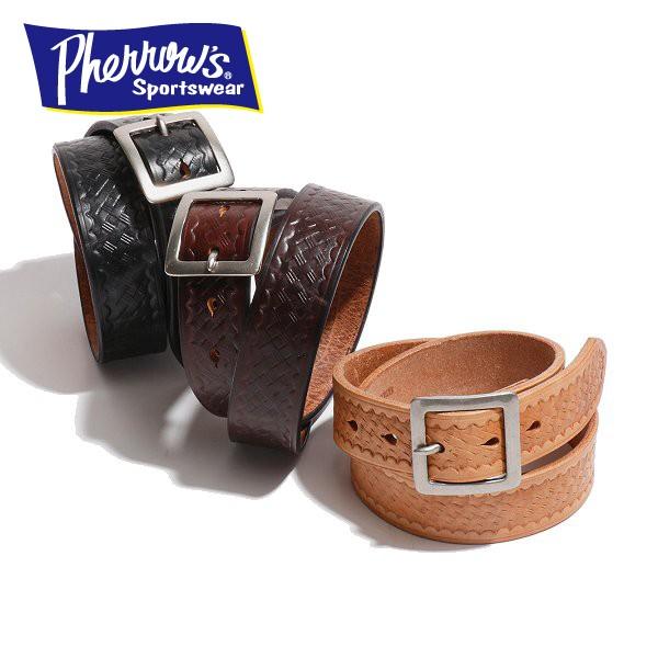 ポイント5倍 フェローズ UKサドルレザー バスケット柄型押し シングルピン ベルト SBB3 PHERROWS