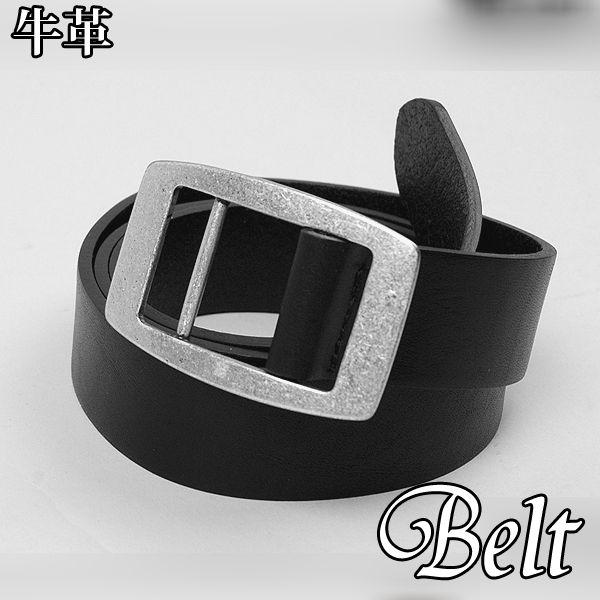 本革 牛革 ベーシック 穴なし 調整自由 シンプル バックル スリム ベルト ブラック 黒 BLT05