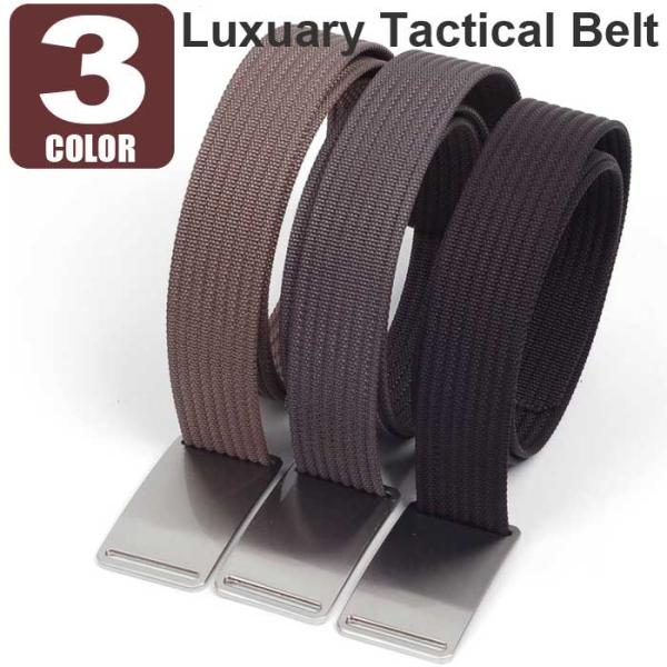 ベルト メンズ ラグジュアリー タクティカル ナイロン ベルト シンプル ソリッド シルバー アロイ バックル ソリッド 無地 3色 穴なし 無段階 調整自由