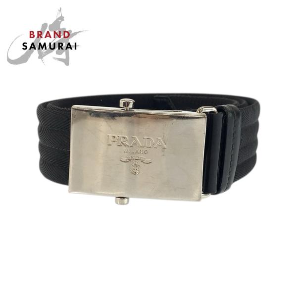 美品 PRADA プラダ 85cm/34インチ ブラック 黒 シルバー金具 ナイロン 2C2386 ベルト ローラーバックルベルト メンズ 601483