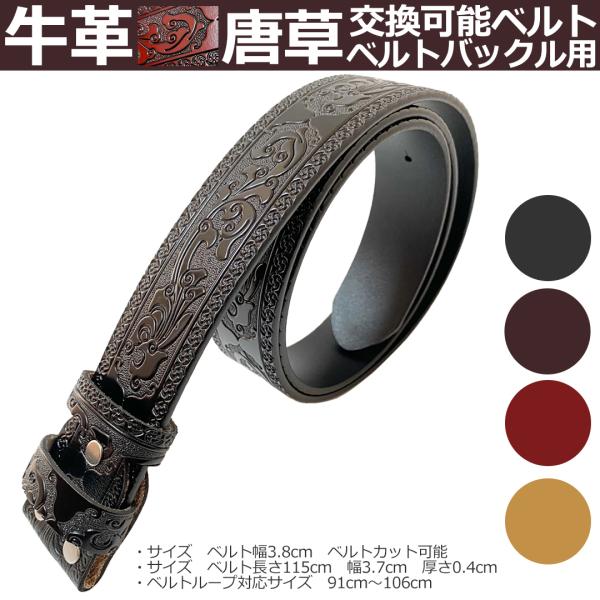ベルト 牛革 本革 唐草ベルト オイルレザー バックル用 交換ベルト 交換用ベルト メンズ レディース カジュアル ビジネス 型押しエンボス加工