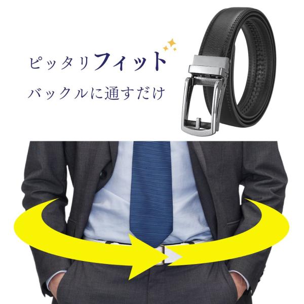 ベルト メンズ オートロック ブラック 黒 本革 穴無し 調整可能 ビジネス フォーマル 自動 通勤 ゴルフ 紳士 おしゃれ 無段階 学生 レザー 130cm 無調整 スーツ