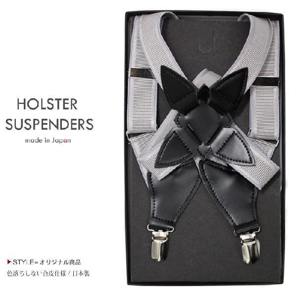 ホルスターサスペンダー(ガンタイプサスペンダー) メンズ スーツ コードバンタイプフェイクレザー / グレー 日本製 ( )