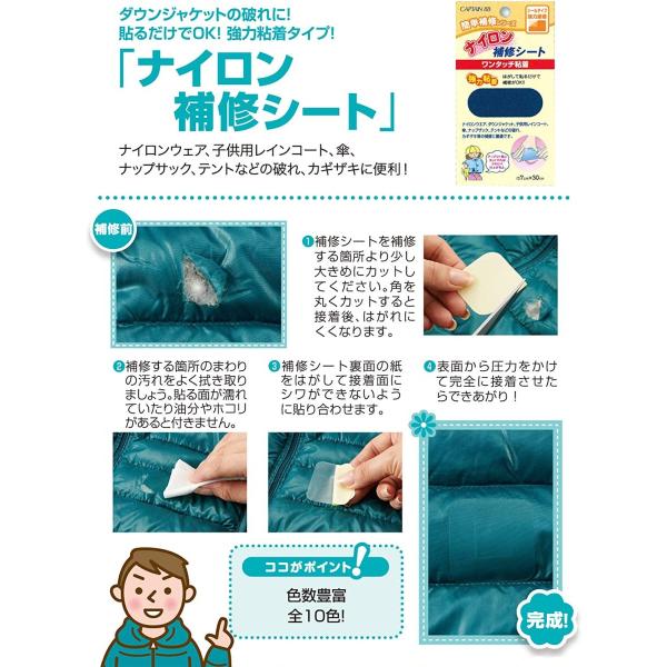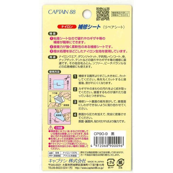 ナイロン補修シート CP90 ナイロン 補修 シール 撥水 破れ 破損 レインコート ウインドブレーカー キャプテン CAPTAIN