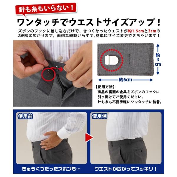 ウエストアジャスター ウエスト調整お直しフック 5色セット 調整フック ズボン サイズ直し ウエスト調節 伸ばす 広げる スーツ スラックス 学生服 メール便
