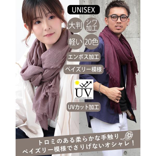 大判 ストール メンズ 春 夏 秋 用 ペイズリー 透かし模様 シワ加工 全20色 a1 a8 プレゼント ギフト クリスマス