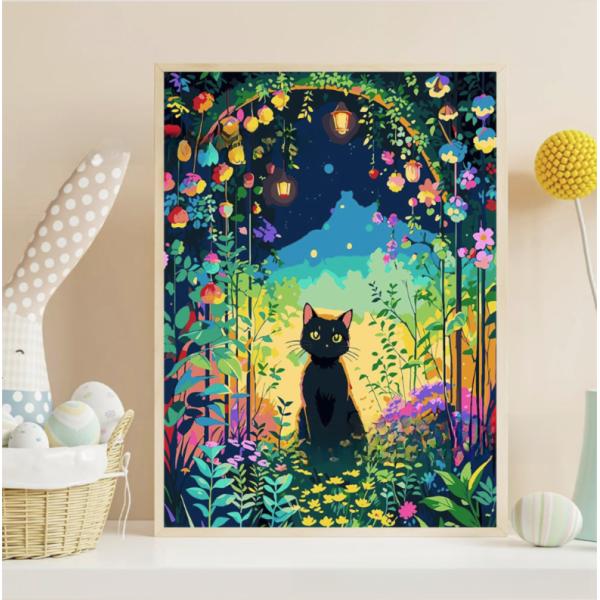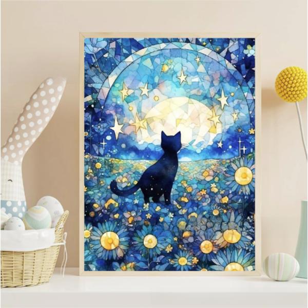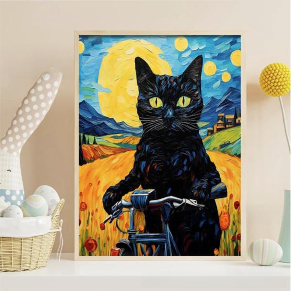 ダイヤモンドアート 初心者 猫 動物 ねこ 黒 ブラック 丸 ラウンド フル 全面貼 趣味 ペット