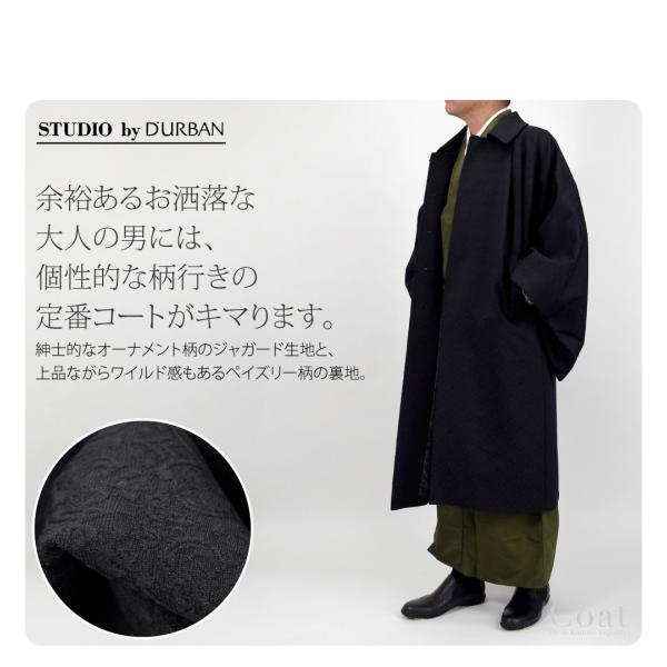 着物 コート 和装 防寒 冬用 日本製 STUDIO by DURBAN 角袖コート 塵除け 角袖外套 ステンカラー 仕立て上がり メンズ