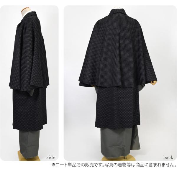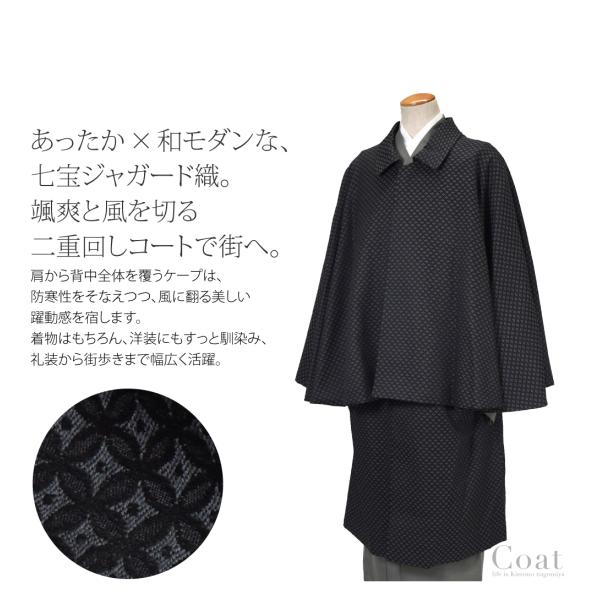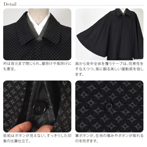 着物 コート 和装 防寒 冬用 日本製 ウール混 二重廻しコート 七宝柄 塵除け 鳶外套 マント ステンカラー 仕立て上がり メンズ