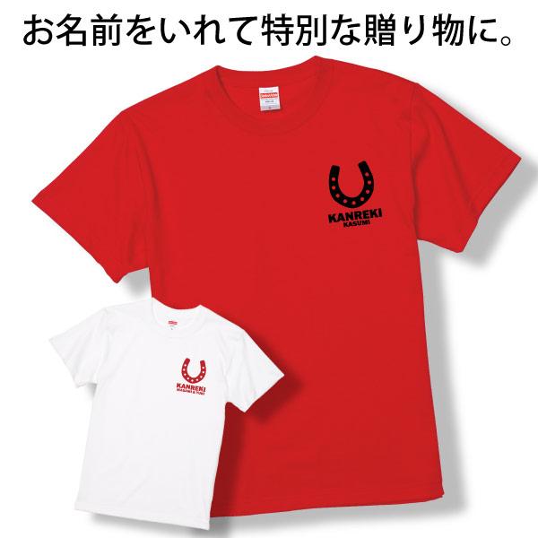還暦祝い 左胸 名入れ 還暦Tシャツ 午 うま 馬 干支 男性 女性 2026年 赤 還暦のお祝い 絵 プレゼント 60歳 かわいい おしゃれ 父 母 贈り物 競馬 蹄鉄 1501 085