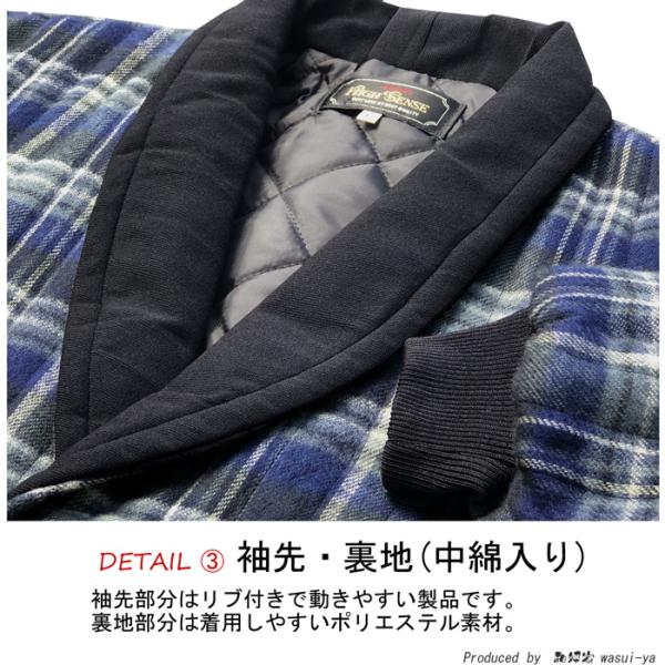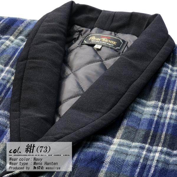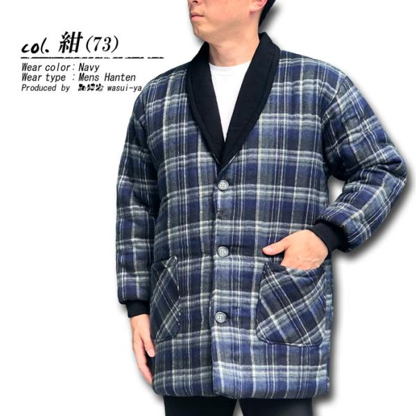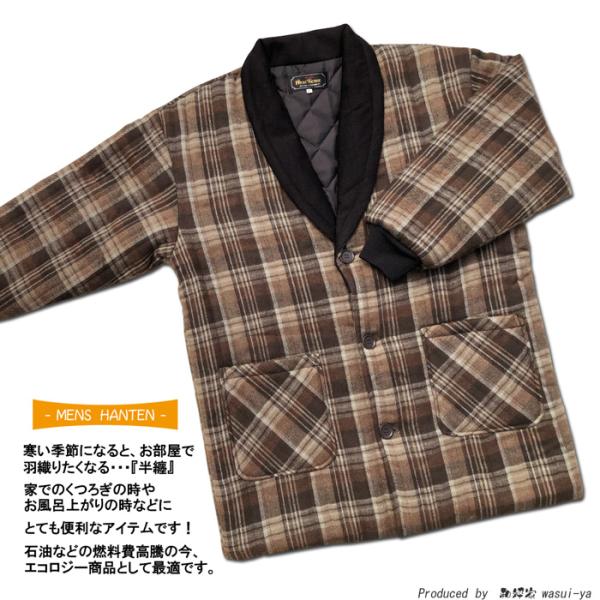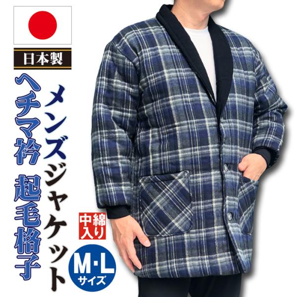 半纏 はんてん メンズ 日本製 ヘチマ 衿 起毛 格子 柄 中綿入り 紳士 ジャケット M ・ L サイズ おしゃれ メンズ 男子 男性 mens hanten 爆買