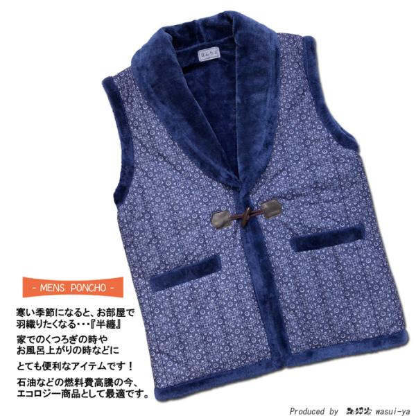 半纏 はんてん メンズ 裏 ボア ヘチマ 衿 中綿入り 紳士 ぽんちょ M 〜 L フリーサイズ おしゃれ メンズ 男子 男性 mens hanten ポンチョ 爆買