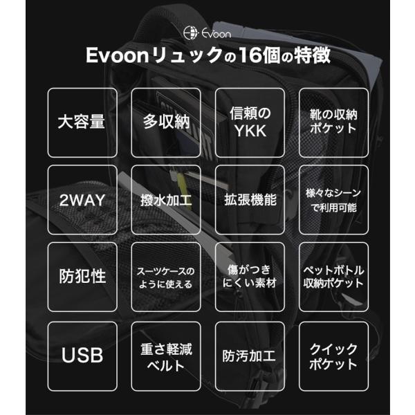 公式 Evoon マルチビジネスリュック2.0 ビジネスリュック メンズ リュック 大容量 多収納 多機能 USB YKK 撥水 出張 旅行 ビジネスバッグ バックパック