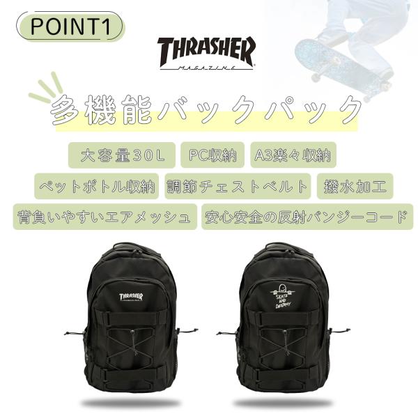リュック 通学 大容量 30L THRASHER 特典つき スラッシャー メンズ レディース 通勤 バックパック 丈夫 撥水 おしゃれ ブランド thrasher318-THCA-303