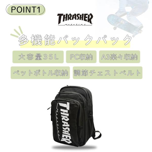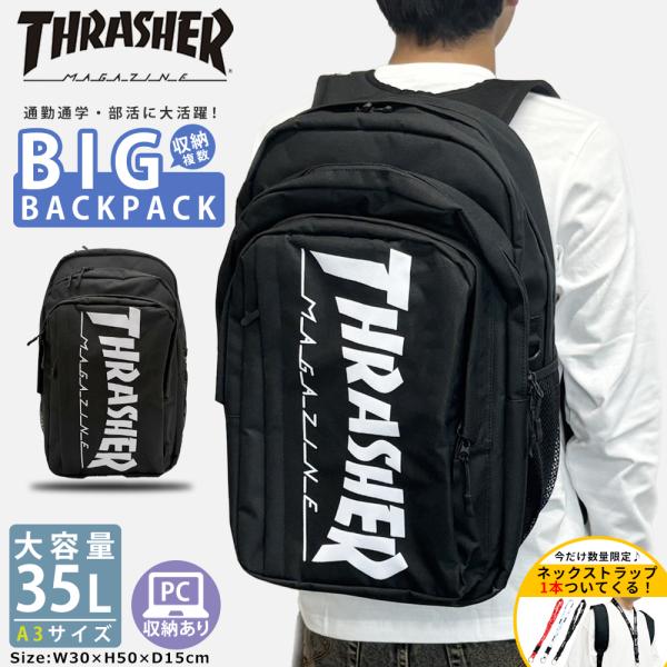 リュック 通学 大容量 35L 特典つき スラッシャー 撥水 THRASHER メンズ レディース 中学生 高校生 大学生 黒 ブランド バックパック thrasher316-TH-F