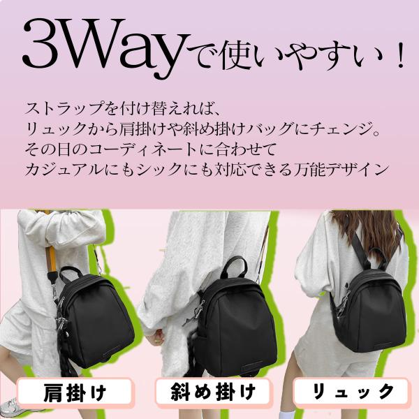 軽量 リュック レディース 小さめ ナイロン きれいめ おしゃれ かわいい 3WAY 防水 撥水 肩掛け 斜め掛けOK デイリー使いに便利なバッグ