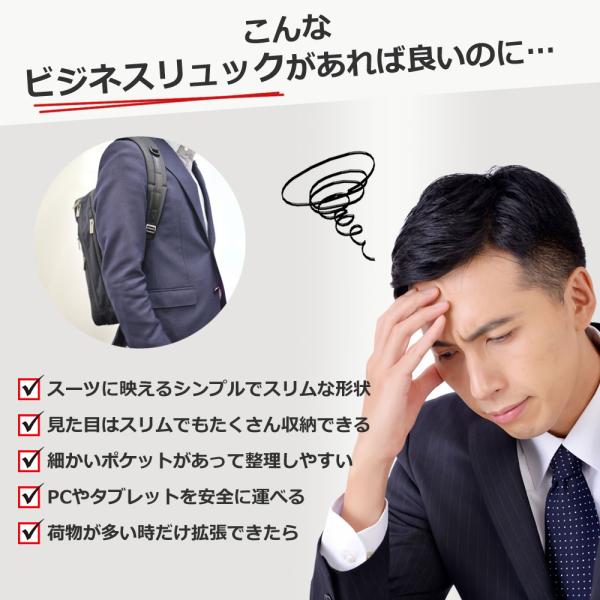 ビジネスリュック メンズ 大容量 防水 薄型 ビジネスバッグ 拡張 就活 出張 スーツ USB 軽量 自転車通勤 PC収納 大きい 通勤バッグ 40代 50代