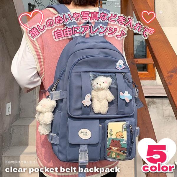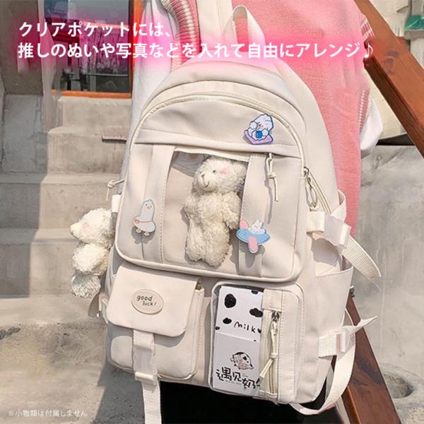 リュックサック レディース メンズ 大容量 シンプル クリアポケット 多収納 通学 バックパック 痛バッグ 痛バ 推し活 ぬい 軽量 ぬい